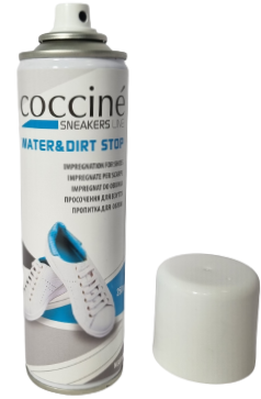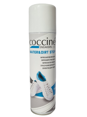Impregnat w aerozolu Cocciné WATER&DIRT STOP to skuteczny i wydajny preparat, który zabezpieczy buty przed zewnętrznymi czynnikami atmosferycznymi jak deszcz, kurz oraz błoto. Cocciné Water&Dirt Stop to impregnat do obuwia dla sportowców oraz aktywnych fizycznie osób.