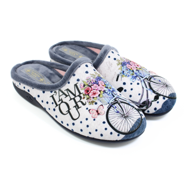 Kapcie damskie rower z kwiatami Sanital Flex szare Z27667X r.41