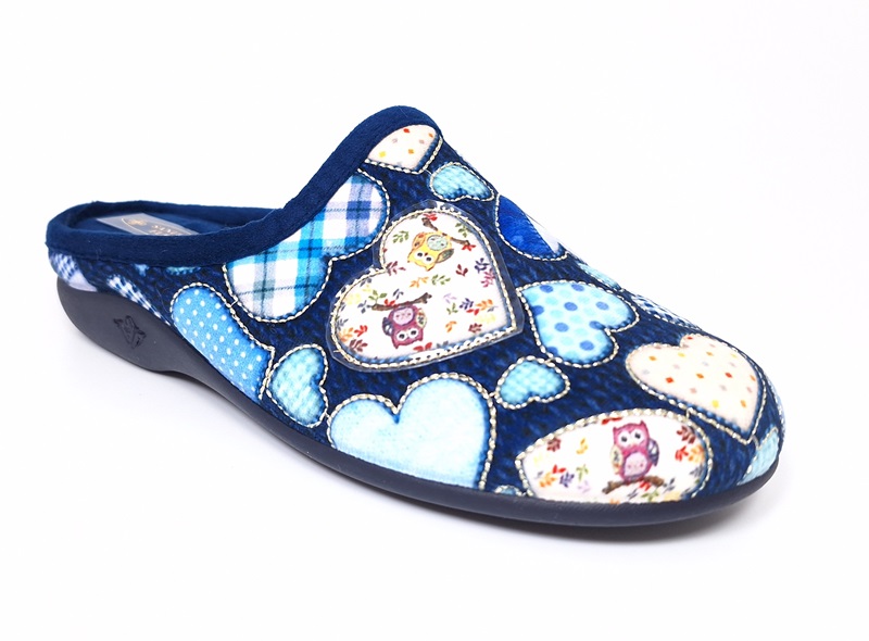• Wygodne kapcie damskie wykonane z miękkiej tkaniny szewskiej, posiadają kolorowy nadruk w postaci różnej wielkości serduszek. Wyprodukowane w Hiszpanii.