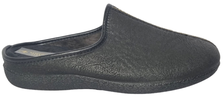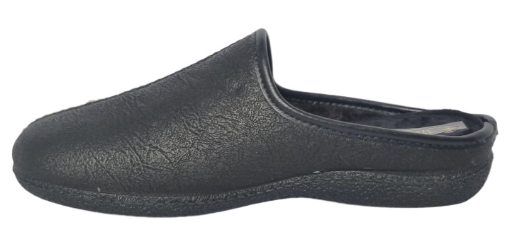 Wykonane z miękkiej tkaniny welurowej w kolorze czarnym. Wnętrze również zostało ocieplone welurem, dzięki czemu kapcie doskonale sprawdzą się w chłodniejsze dni, zapewniając ciepło i wygodę. Podeszwa, to wysokiej jakości guma antypoślizgowa. Miękka jednocześnie mocno trzymająca się podłoża. Model obuwia jest wsuwany, co ułatwia szybkie i bezproblemowe zakładanie.