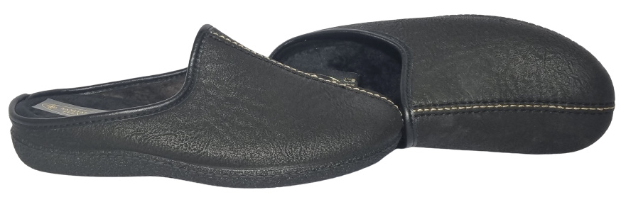 Wykonane z miękkiej tkaniny welurowej w kolorze czarnym. Wnętrze również zostało ocieplone welurem, dzięki czemu kapcie doskonale sprawdzą się w chłodniejsze dni, zapewniając ciepło i wygodę. Podeszwa, to wysokiej jakości guma antypoślizgowa. Miękka jednocześnie mocno trzymająca się podłoża. Model obuwia jest wsuwany, co ułatwia szybkie i bezproblemowe zakładanie.