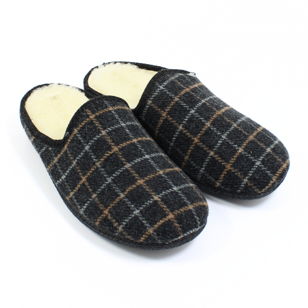 - Wygodne kapcie męskie wyłożone wełną virgin.