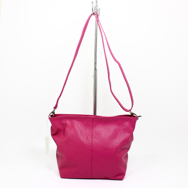 Klasyczna torebka damska Borse in Pelle o kształcie trapezu uszyta z naturalnej, włoskiej groszkowanej skóry. Posiada jedną pojemną komorę zapinaną na zamek błyskawiczny. Wnętrze jest przedzielone na pół dodatkową kieszenią zapinaną na suwak. Dodatkowo, na jednej ze ścianek znajduje się otwarta kieszonka. Całość wykończona jest jasną podszewką. Torebka wyposażona w długi i regulowany pasek, dzięki czemu możesz nosić ją wygodnie na ramieniu.