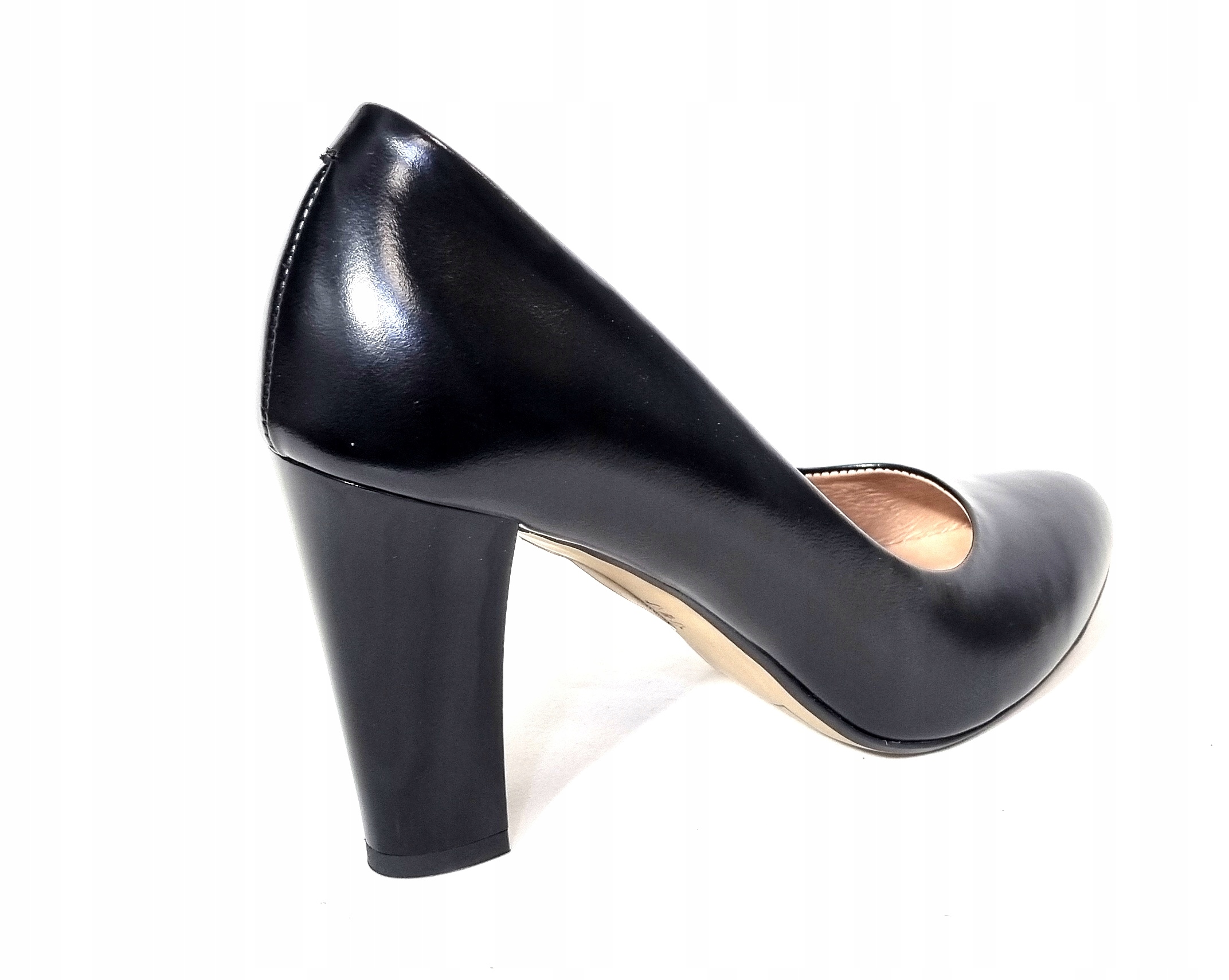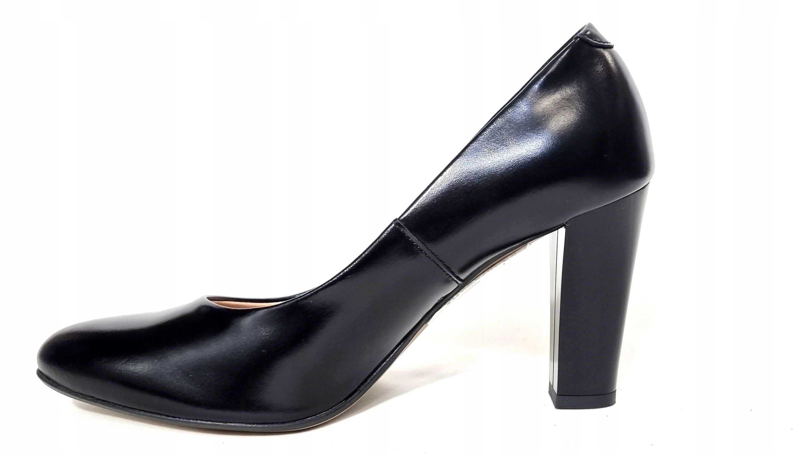 Czółenko z czarnej gładkiej skóry licowej.