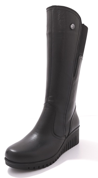 • Komfortowe kozaki damskie, wykonane z miękkiej skóry naturalnej w czarnym kolorze, ocieplone kocem obuwniczym. Krótkie kozaki skórzane na stabilnej platformie, z okrągłym noskiem, zapinane na wygodny zamek.