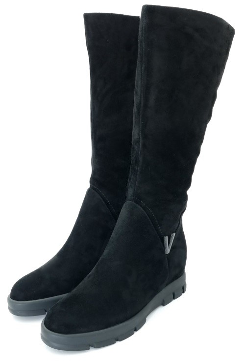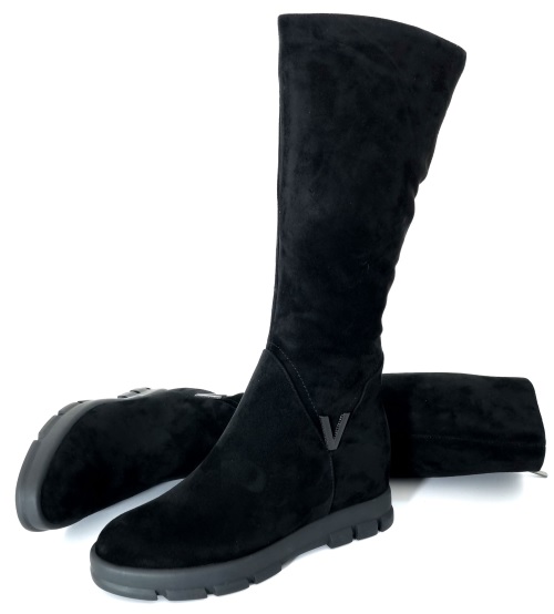 • Zamszowe kozaki damskie na ukrytej koturnie marki Loretta Vitale, doskonałe na chłodniejsze jesienno-zimowe dni. Kozaki zapinane na zamek, lekko ocieplane.