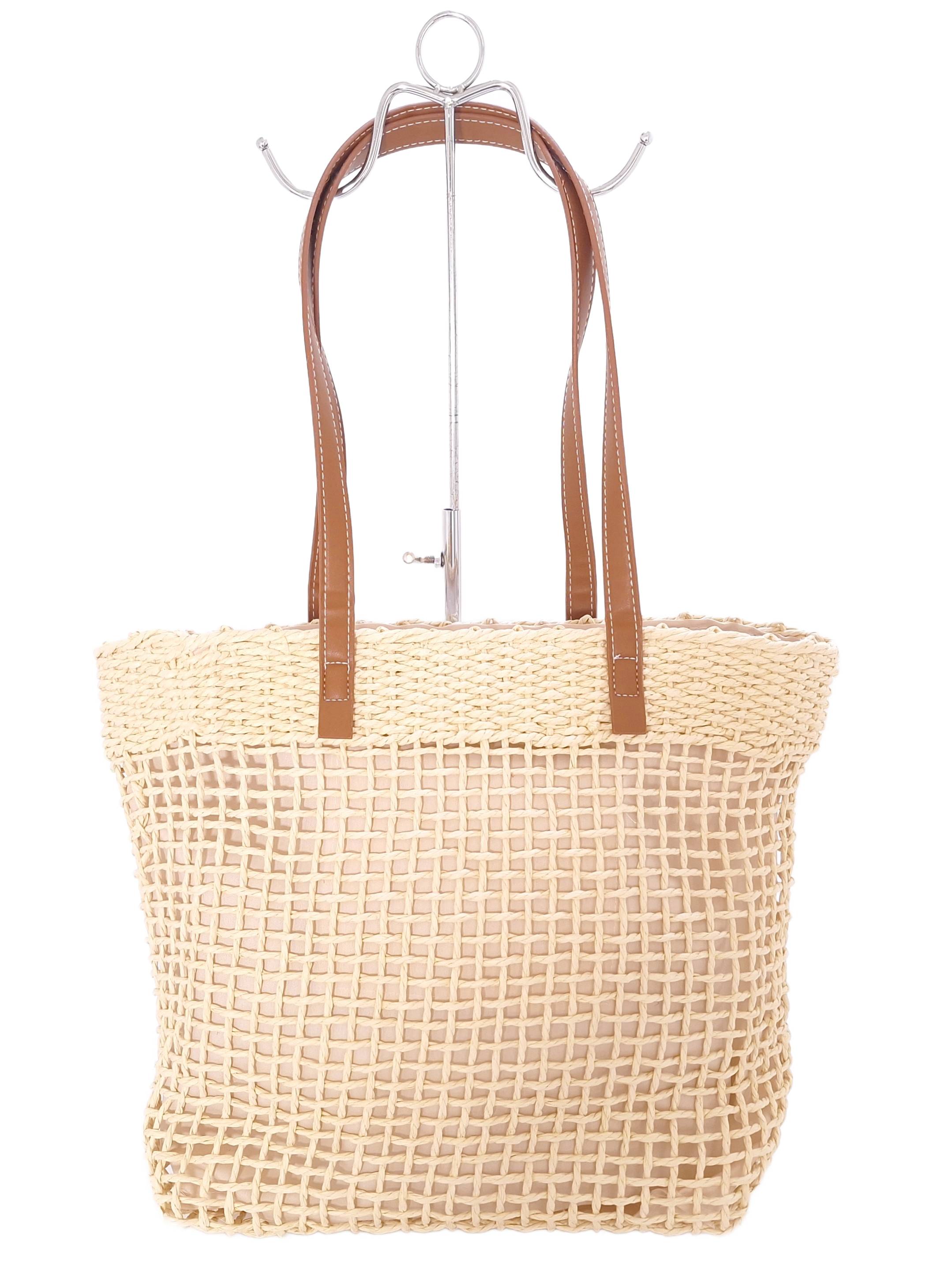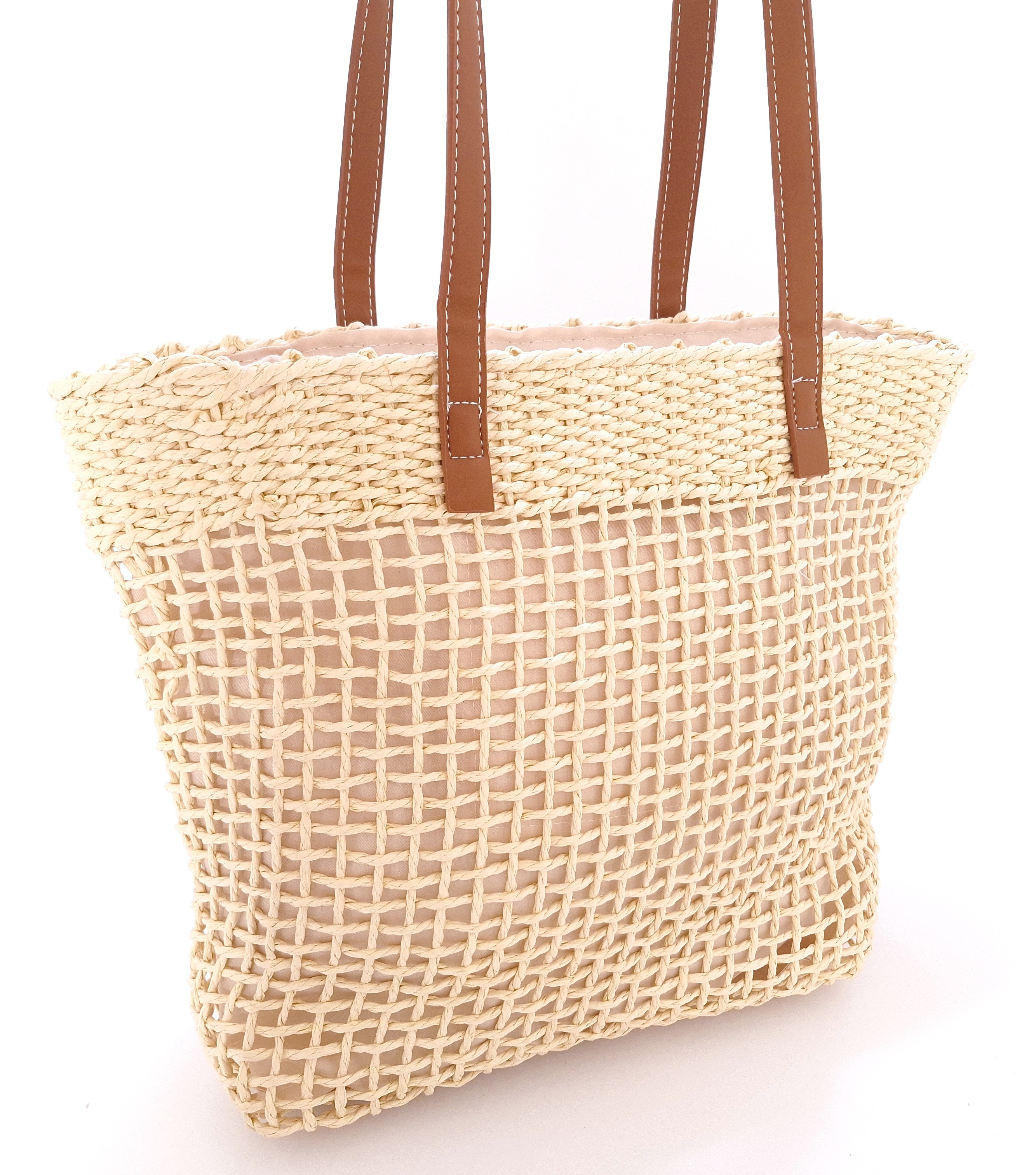 - torebka wykonana ze słomki papierowej w beżowym kolorze.