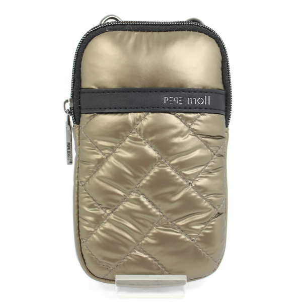 Mała damska saszetka- torebka Pepe Moll stanowi idealny dodatek na sytuacje, kiedy potrzebujesz przy sobie tylko niezbędnych rzeczy. Wygodnie przechowa telefon, karty płatnicze i klucze. Prosty, a zarazem efektowny model będzie świetnie wyglądał do casualowych jak i sportowych stylizacji. Wykonana z wysokiej jakości syntetycznego materiału w złotym metalicznym kolorze. Delikatne przeszycia tworzą subtelny, geometryczny wzór nadający listonoszce unikalnego charakteru. Dzięki regulowanemu paskowi, listonoszka może być noszona na różne sposoby – jako crossbody lub na ramieniu, co pozwala na idealne dopasowanie do Twoich potrzeb.