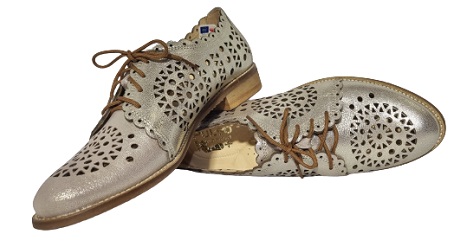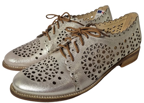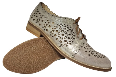 Cholewka ażurowa, metalizowana wykonana ze skóry naturalnej.