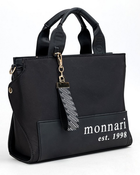 Mała torebka damska typu kuferek marki Monnari to stylowy i praktyczny dodatek, idealny na co dzień. Wykonana z materiału tekstylnego w klasycznym czarnym kolorze.Torebka posiada wygodne krótkie uchwyty do noszenia w dłoni oraz odpinany pasek, umożliwiający noszenie na ramieniu, co czyni ją bardzo funkcjonalną. Przód torebki zdobi logo marki. Model jednokomorowy zamykany na zamek błyskawiczny. Spód zabezpieczony jest ochronnymi nóżkami, co zwiększa jej trwałość. Torebka damska typu kuferek jest doskonałym wyborem dla kobiet ceniących funkcjonalność w codziennym użytkowaniu.