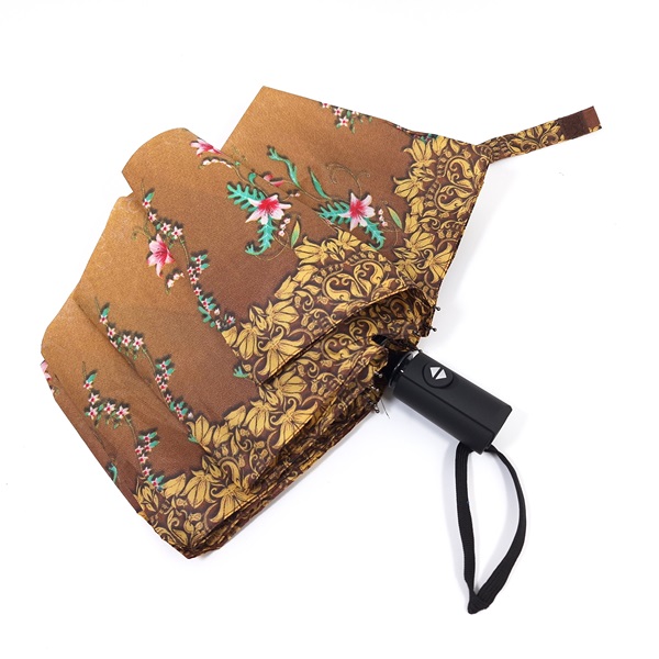 Szukasz stylowej, a zarazem funkcjonalnej parasolki damskiej? Ten mały automatyczny parasol z mechanizmem otwierania i składania to doskonały wybór! W kolorze subtelnego, jasnego brązu ozdobiony delikatnym wzorem róż, stanowi idealne połączenie elegancji i praktyczności. Czasza parasola wykonana jest z wysokiej jakości materiału poliestrowego pongee, który skutecznie chroni przed przemakaniem. Konstrukcja parasola opiera się na metalowym trzonie i 10 metalowych żebrach, które zapewniają stabilność nawet przy mocniejszych podmuchach wiatru. Rączka wyposażona jest w praktyczny pasek, dzięki czemu łatwo zawiesisz parasolkę na wieszaku. Dodatkowo, pasek z rzepem pozwala na bezpieczne zapięcie po złożeniu, co zapobiega niechcianemu rozkładaniu się parasola.