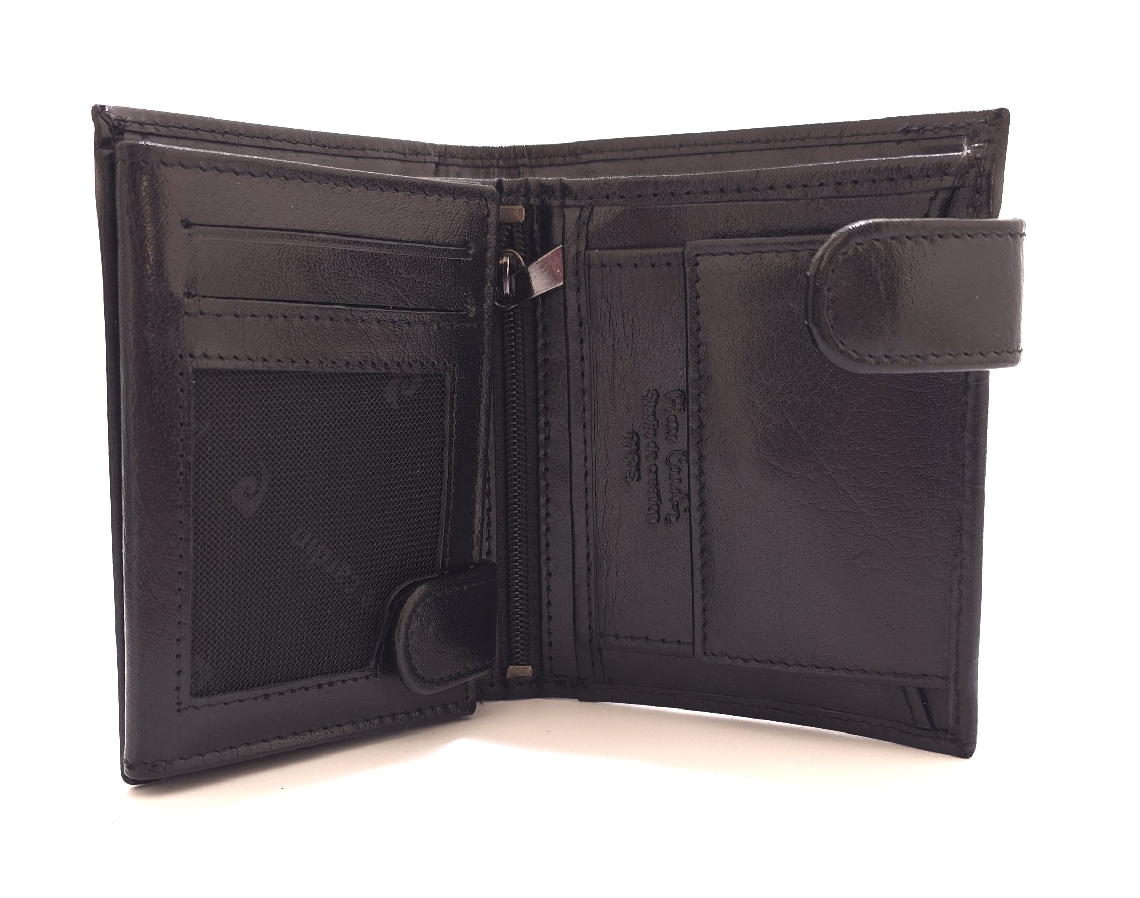 Mały skórzany portfel męski czarny z zapięciem Pierre Cardin G023