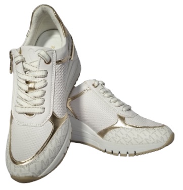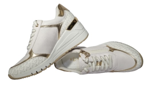 Cholewka wykonana z wysokiej jakości materiału syntetycznego w białym odcieniu w polączeniu ze złotymi wstawkami. Wkładka także została wykonana z materiału syntetycznego.