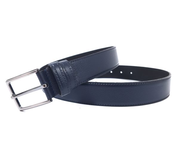 Męski pasek wykonany z naturalnej skóry w granatowym kolorze to wszechstronny i elegancki dodatek do formalnych, jak i do casualowych stylizacji. Pasek wyposażony jest w klasyczną kwadratową klamrę w srebrnym kolorze. Posiada funkcję indywidualnego dopasowania długości, dzięki możliwości skrócenia go przy klamrze.