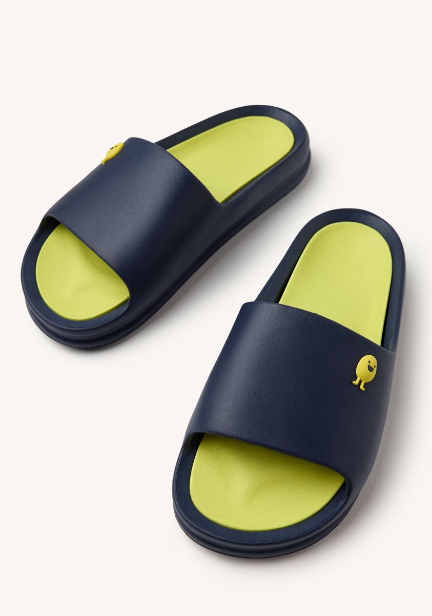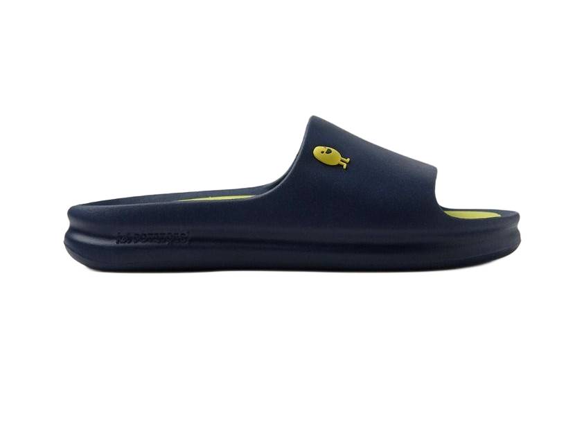 Męskie klapki Hot Potatoes to idealne połączenie komfortu, lekkości i oryginalnego stylu. Wykonane z miękkiego i elastycznego tworzywa, zapewniają nie tylko lekkość noszenia, ale też maksymalny komfort każdego dnia. Granatowa cholewka w połączeniu z kontrastową, limonkową wkładką nadaje obuwiu nowoczesnego charakteru. Wyjątkowym akcentem jest urocza aplikacja w kształcie uśmiechniętego ziemniaczka, która podkreśla swobodny, zabawny styl marki Hot Potatoes. Model wyposażono w wymienne wkładki, w tym jedną wykończoną przyjemną w dotyku mikrofibrą – dla jeszcze większej wygody noszenia. Antypoślizgowa podeszwa zwiększa bezpieczeństwo chodzenia.