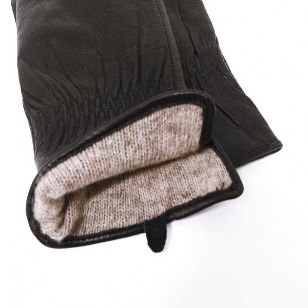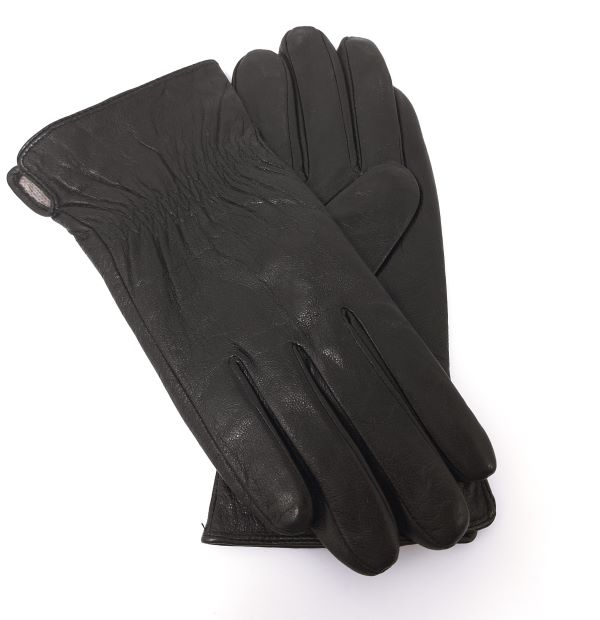 Męskie skórzane rękawiczki z marszczeniem czarne