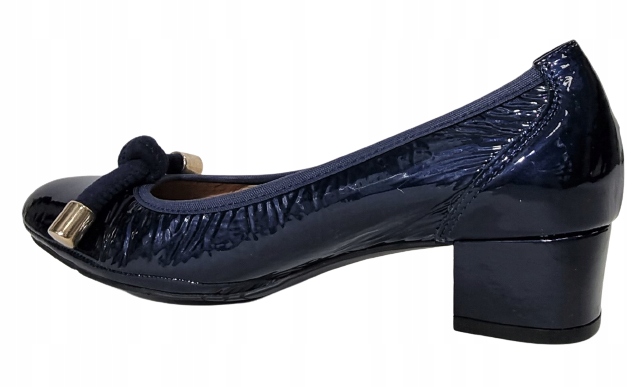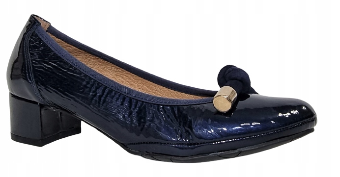 HISZPAŃSKIE obuwie z zewnątrz wykonane z NATURALNEJ SKÓRY LAKIEROWANEJ w kolorze granatowym.