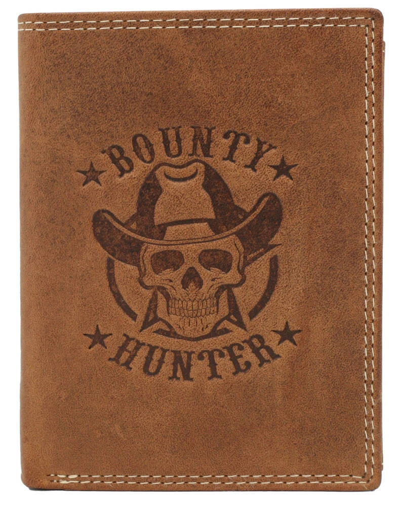 - Duży portfel męski odszyty z nubukowej skóry naturalnej o pionowej orientacji z zapięciem zewnętrznym. Na froncie wytłoczony wizerunek czaszki. Wyposażony w technologię RFID BLOCKING SYSTEM. Mieści dowód rejestracyjny. Zapakowany w pudełko.