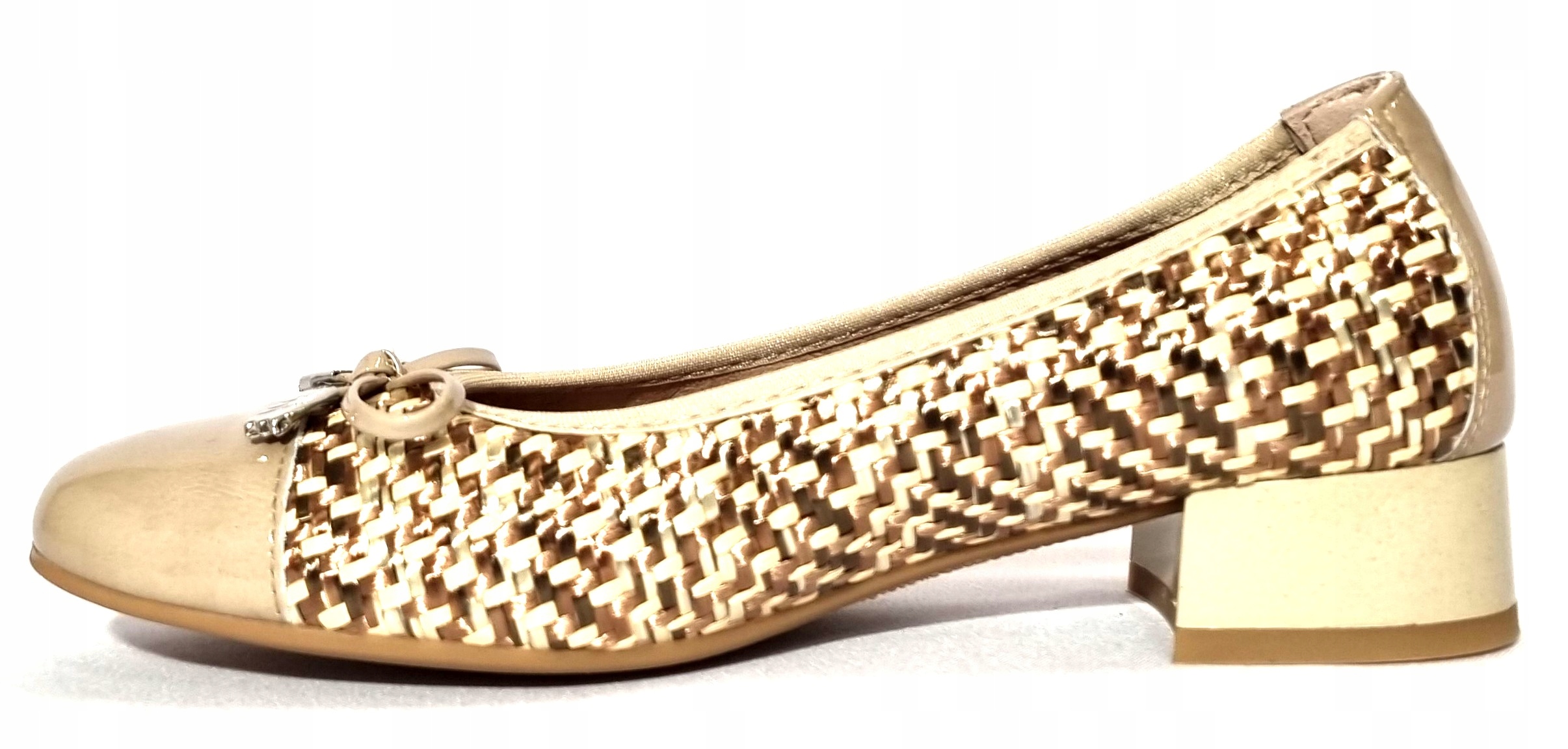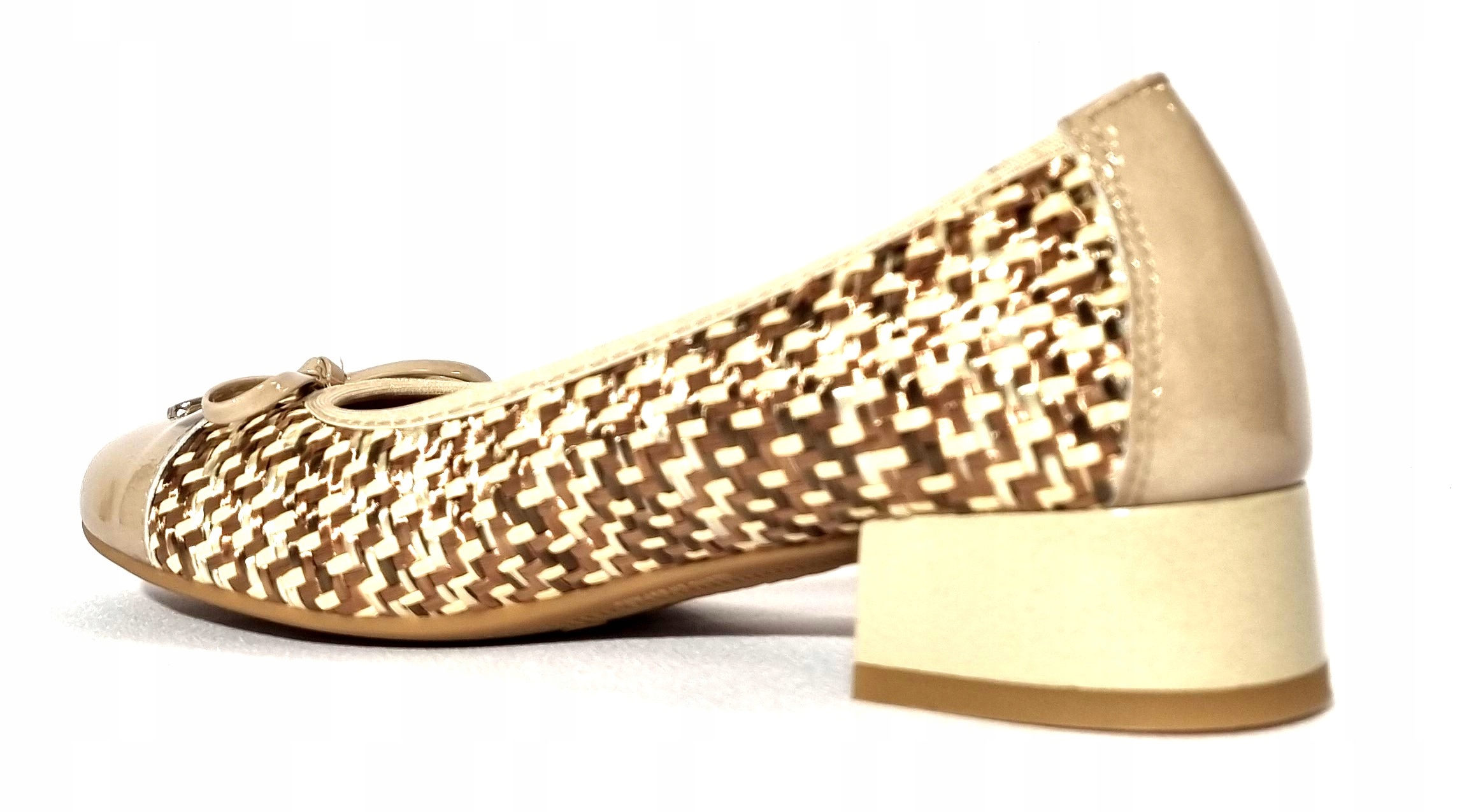 Przedstawiamy bardzo wygodne i efektowne eleganckie półbuty na niskim obcasie w pięknym kolorze beżu łączony z innymi kolorami na czubku butów kokardka która dodaje im uroku.
