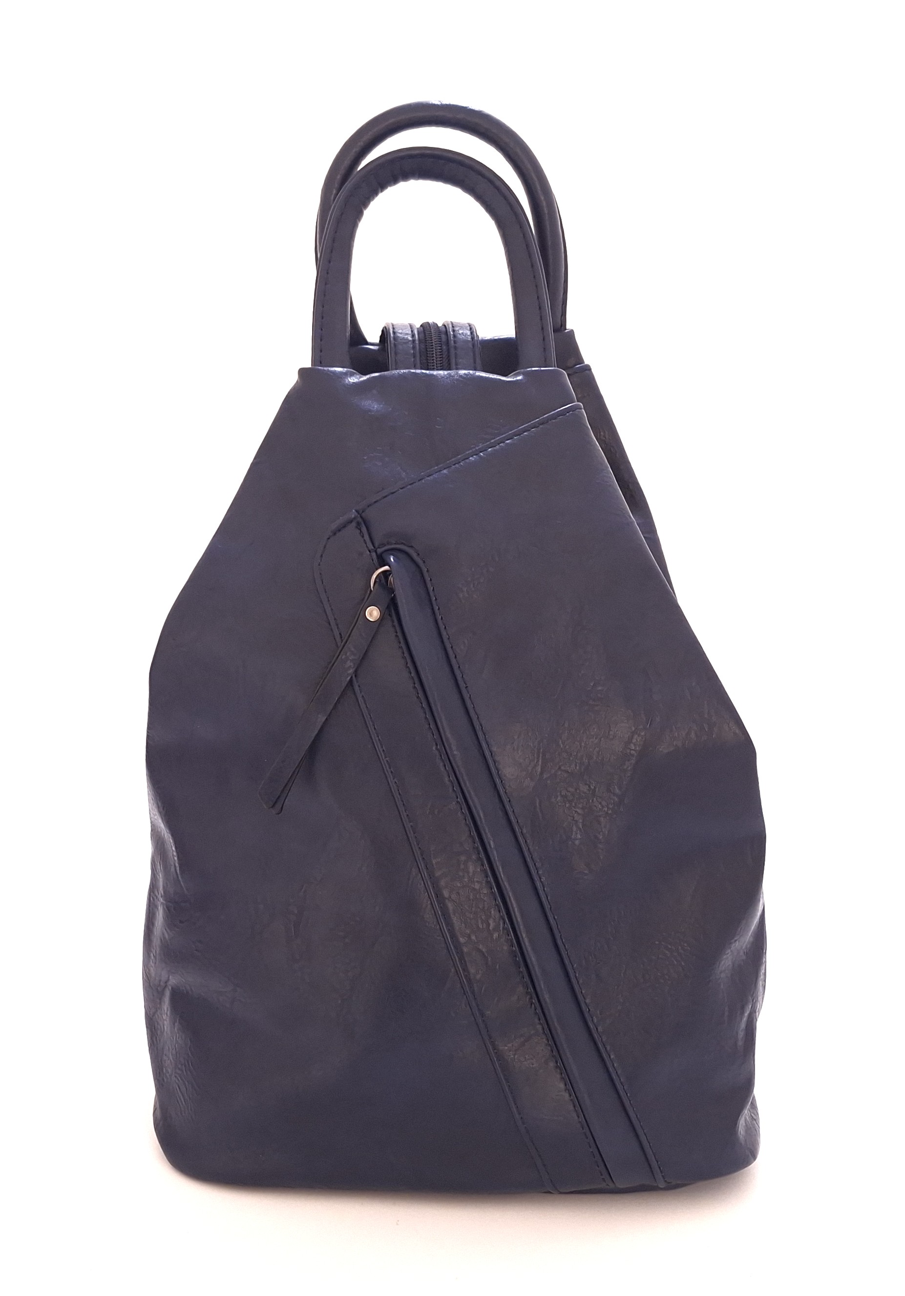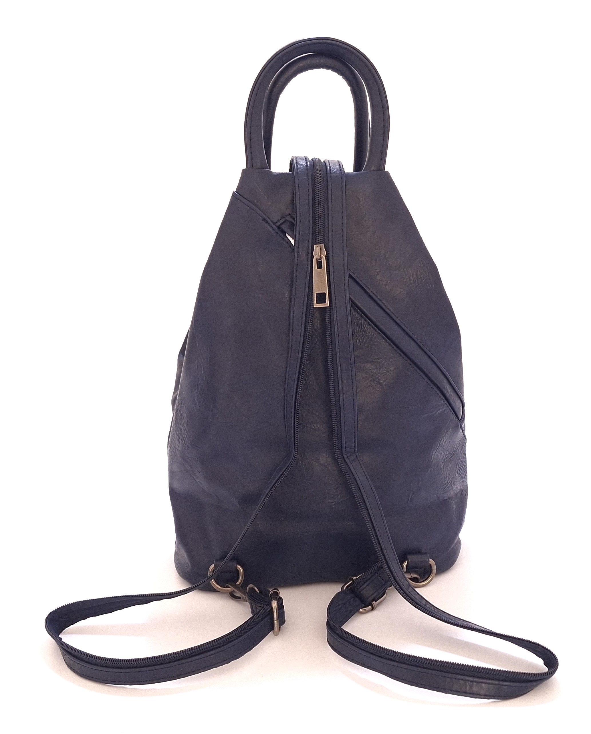 Plecak damski ekoskóra trójkątny granatowy z suwakiem Elyeung ZXJ781