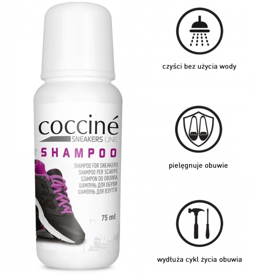 Cocciné Shampoo Sneakers Line to bezbarwny szampon do obuwia, który szybko i skutecznie czyści tekstylia, welur i zamsz.
