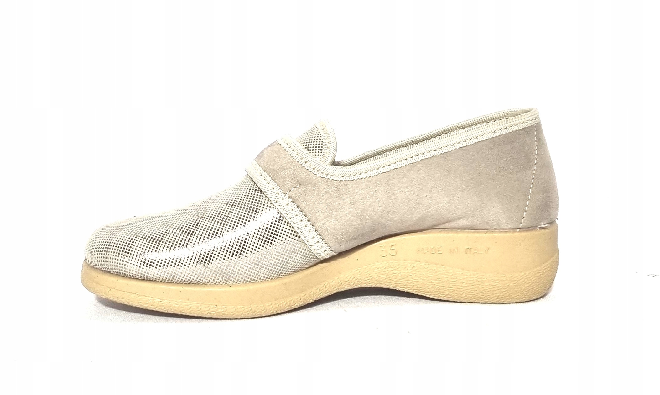 Półbuty marki Snital Flex. Cholewka została wykonana z materiału tekstylnego. Wnętrze również zostało wykonane z materiału tekstylnego aby zapewnić komfort podczas użytkowania. Koturn jest o wysokości 3,7 cm. Zapięcie jest na rzep.