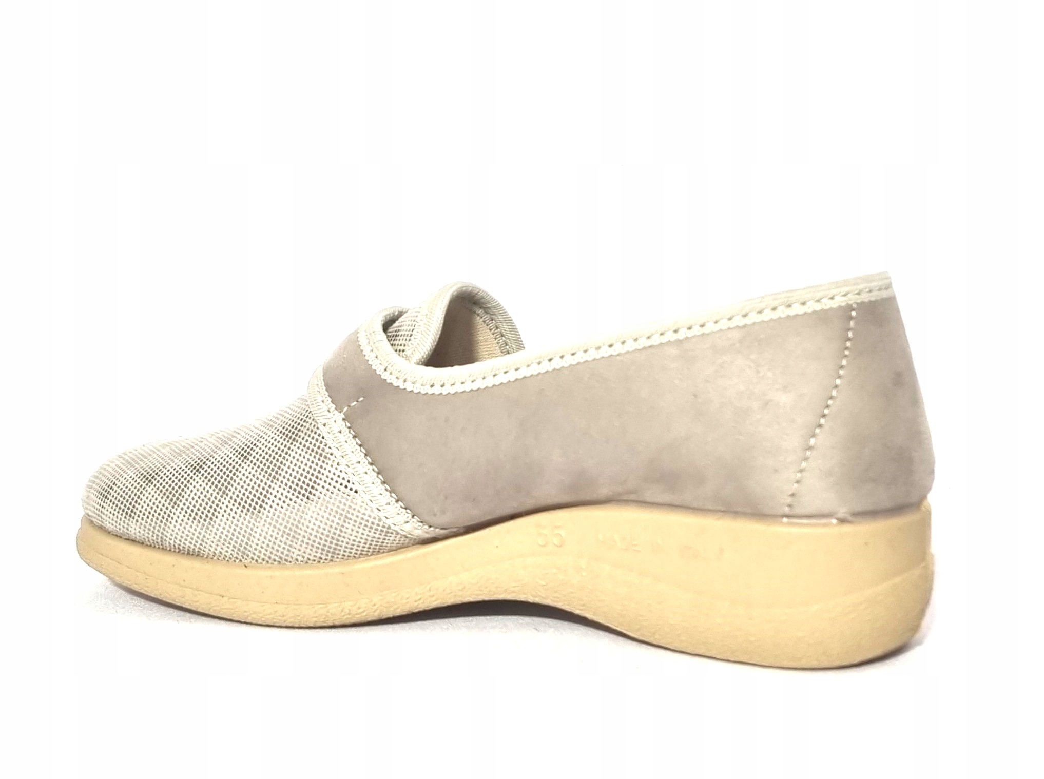 Półbuty marki Snital Flex. Cholewka została wykonana z materiału tekstylnego. Wnętrze również zostało wykonane z materiału tekstylnego aby zapewnić komfort podczas użytkowania. Koturn jest o wysokości 3,7 cm. Zapięcie jest na rzep.