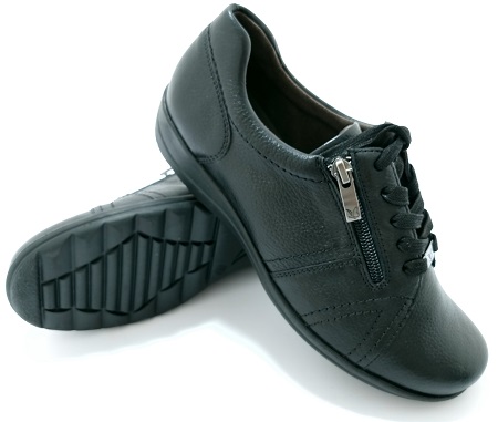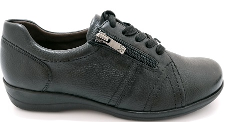 - Skórzane półbuty. Model sznurowany z dodatkowym zamkiem.