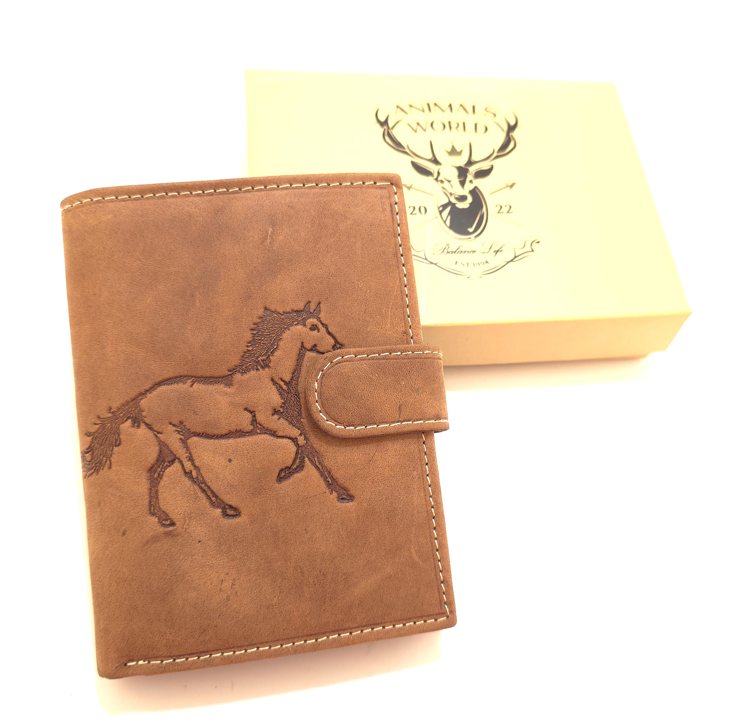 Duży, pionowy męski portfel Always Wild odszyty z trwałej nubukowej skóry naturalnej o klasycznej stylistyce. Portfel w orientacji pionowej bez zapięcia zewnętrznego. Na froncie umieszczono efektowne tłoczenie z motywem konia, dodające portfelowi charakteru i unikalnego stylu. Wnętrze zostało zaprojektowane z myślą o maksymalnej funkcjonalności. Portfel oferuje liczne przegródki na karty, dokumenty i banknoty, a także kieszenie mieszczące dokumenty w większym formacie, takie jak dowód rejestracyjny.