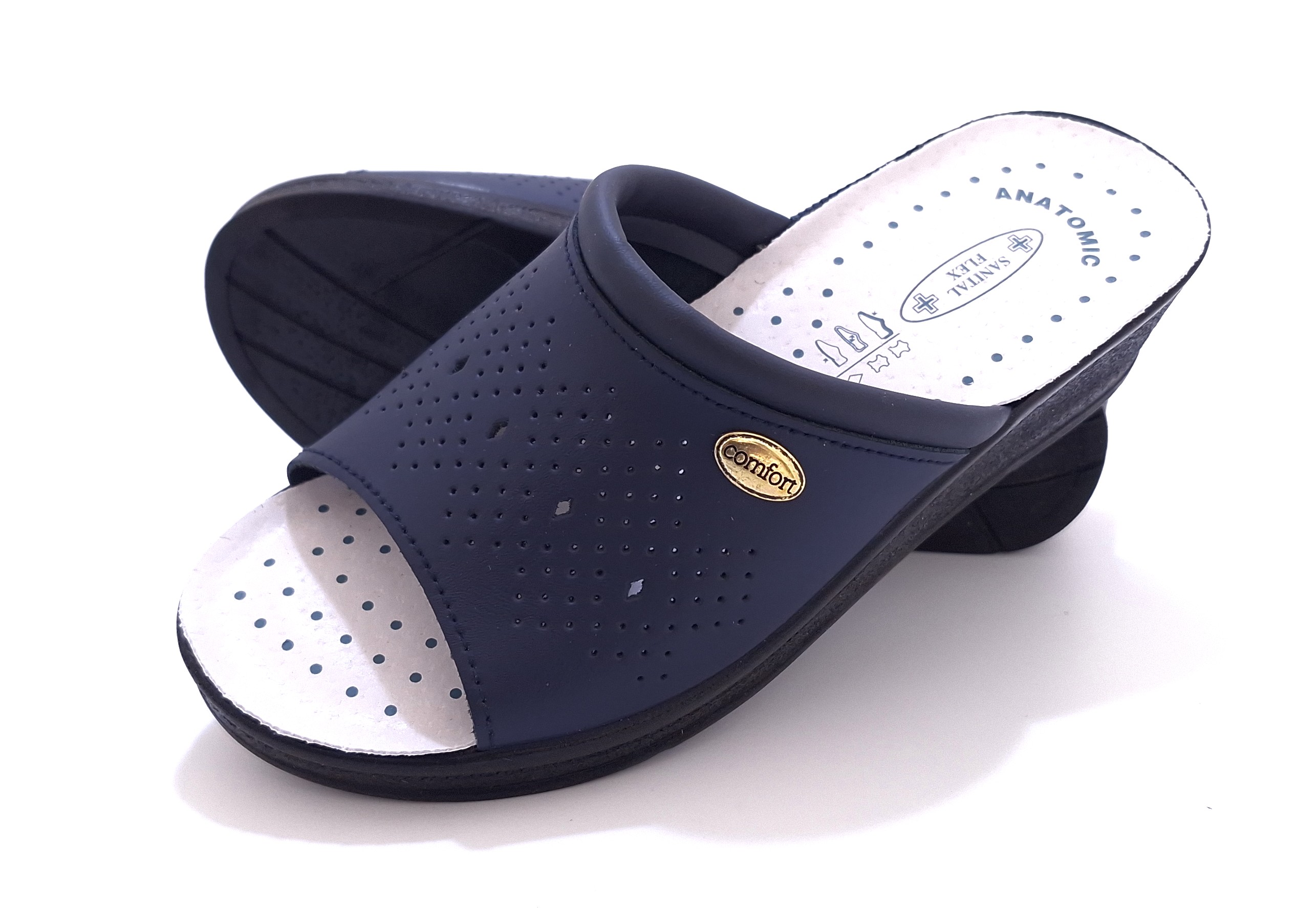 Profilaktyczne klapki damskie skórzane Sanital Flex 698/I granatowe r37