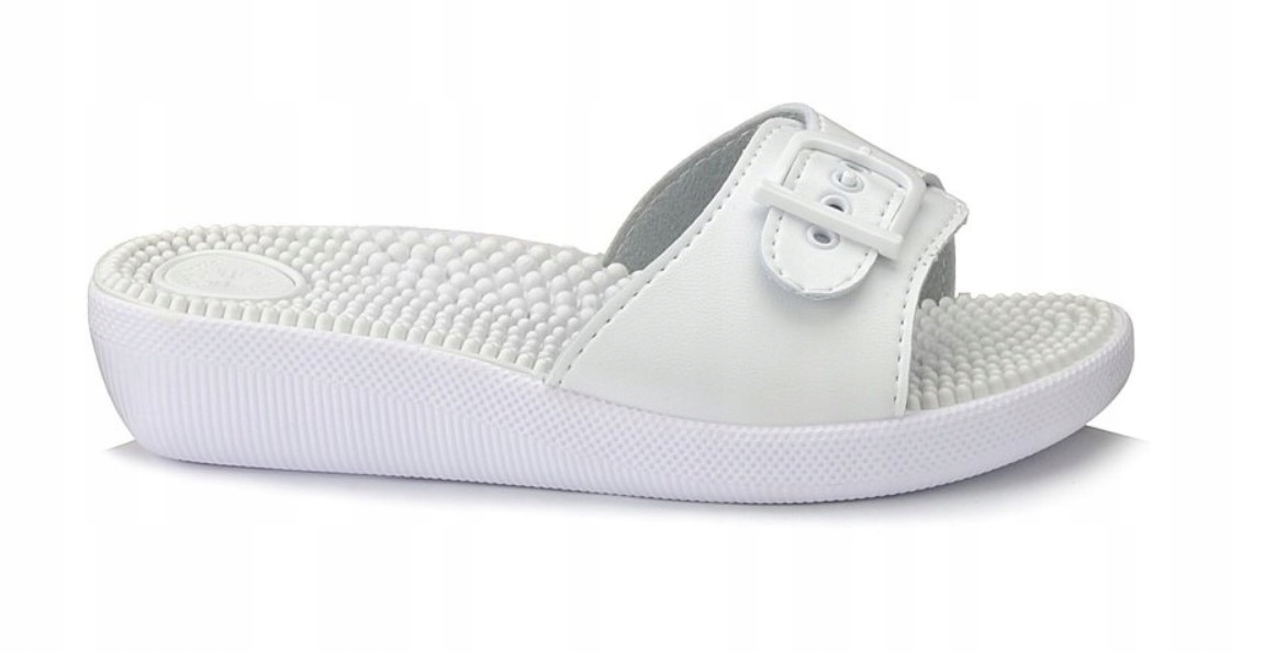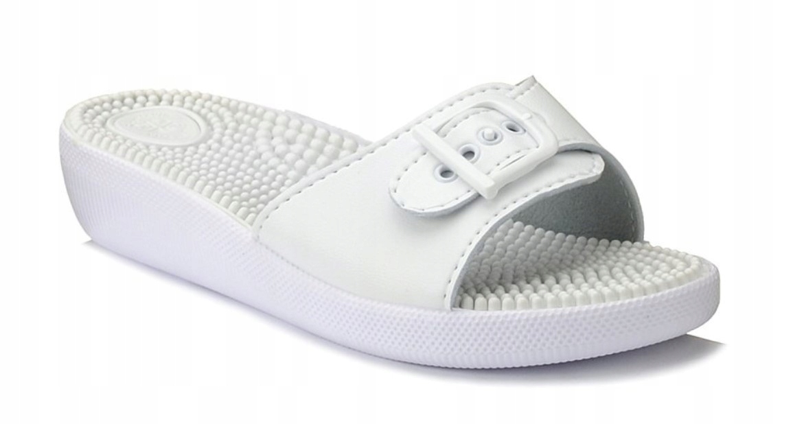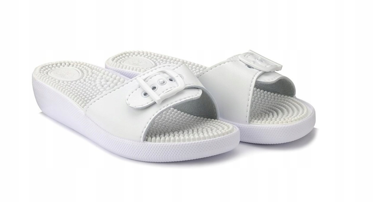 Zdrowotne, medyczne klapki damskie. Wyściółka fakir, masuje stopę korzystnie wpływając na krążenie i wzmacnia mięśnie stóp. Profilowana, elastyczna i amortyzująca podeszwa.