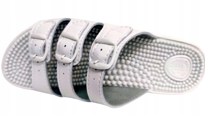 Zdrowotne, medyczne klapki damskie. Wyściółka fakir, masuje stopę korzystnie wpływając na krążenie i wzmacnia mięśnie stóp. Profilowana, elastyczna i amortyzująca podeszwa.