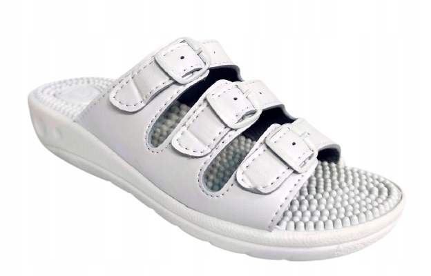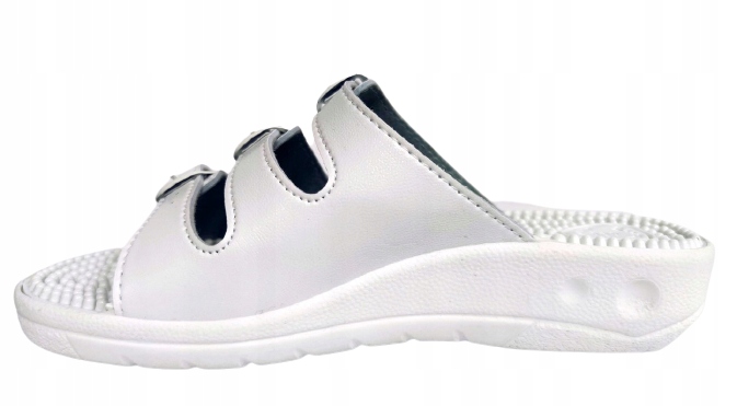 Zdrowotne, medyczne klapki damskie. Wyściółka fakir, masuje stopę korzystnie wpływając na krążenie i wzmacnia mięśnie stóp. Profilowana, elastyczna i amortyzująca podeszwa.