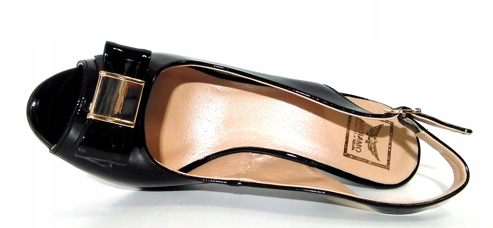 Bardzo wygodne sandałki firmy ANDIAMO na 9,5cm szpilce w kolorze czarnym wykonane ze skóry naturalnej lakierowanej, wkładka skóra naturalna.