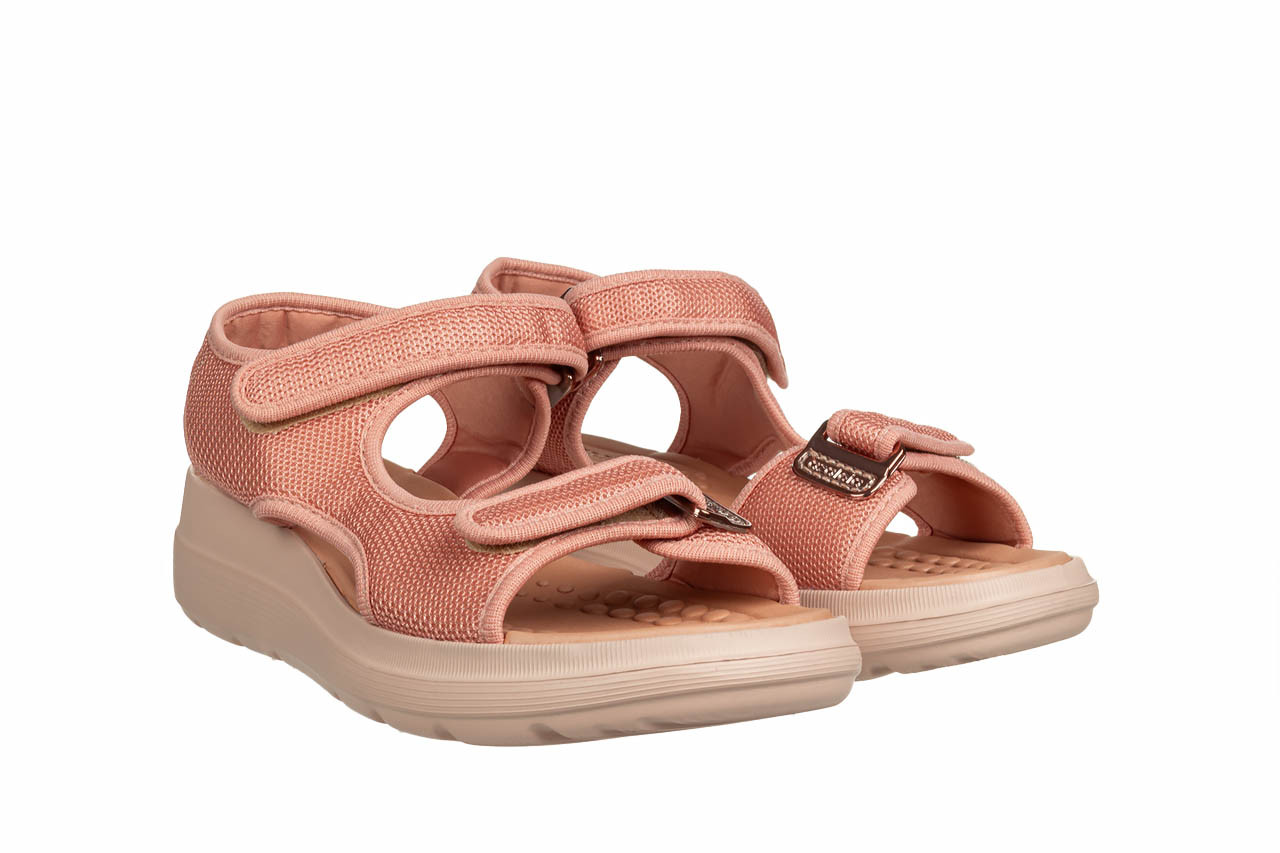- Różowe sandały damskie zapinane na rzepy to połączenie komfortu i stylu. Wykonane z oddychającego materiału tekstylnego. Lekka podeszwa.