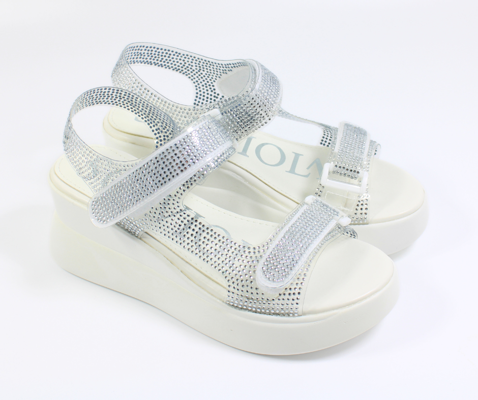 Sandały damskie z cyrkoniami na koturnie Scaviola L-36 Białe r38