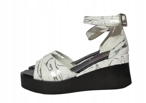 Sandały koturn Artiker 50c1850 biało srebrne r38