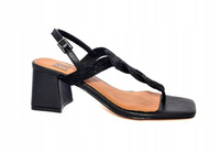 Przedstawiamy państwu sandały hiszpańskiej marki BIBI LOU. Zostały wykonane ze skóry ekologicznej. Wkładka została wykonana ze skóry naturalnej. Zapięcie na sprzączkę. Wysokość obcasa wynosi 6,9 cm.