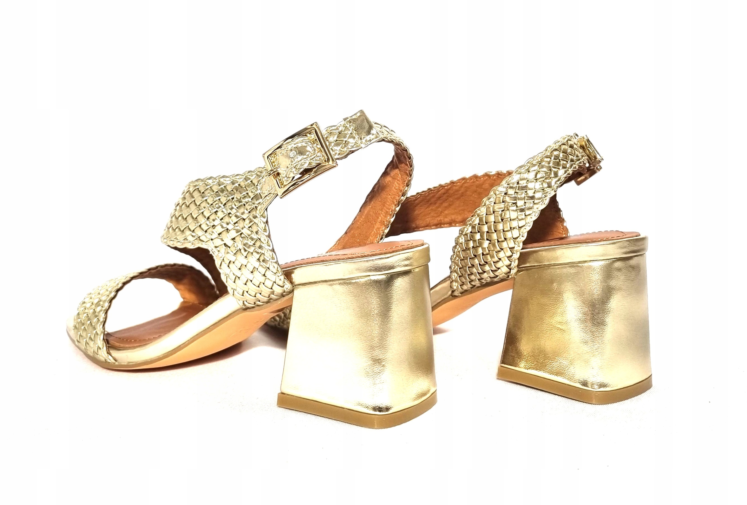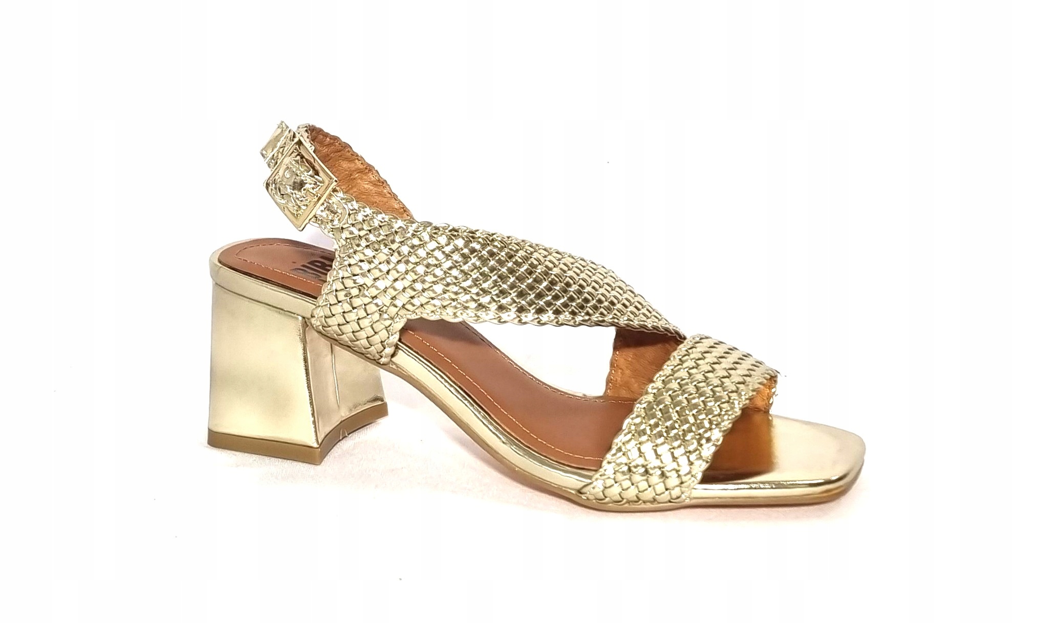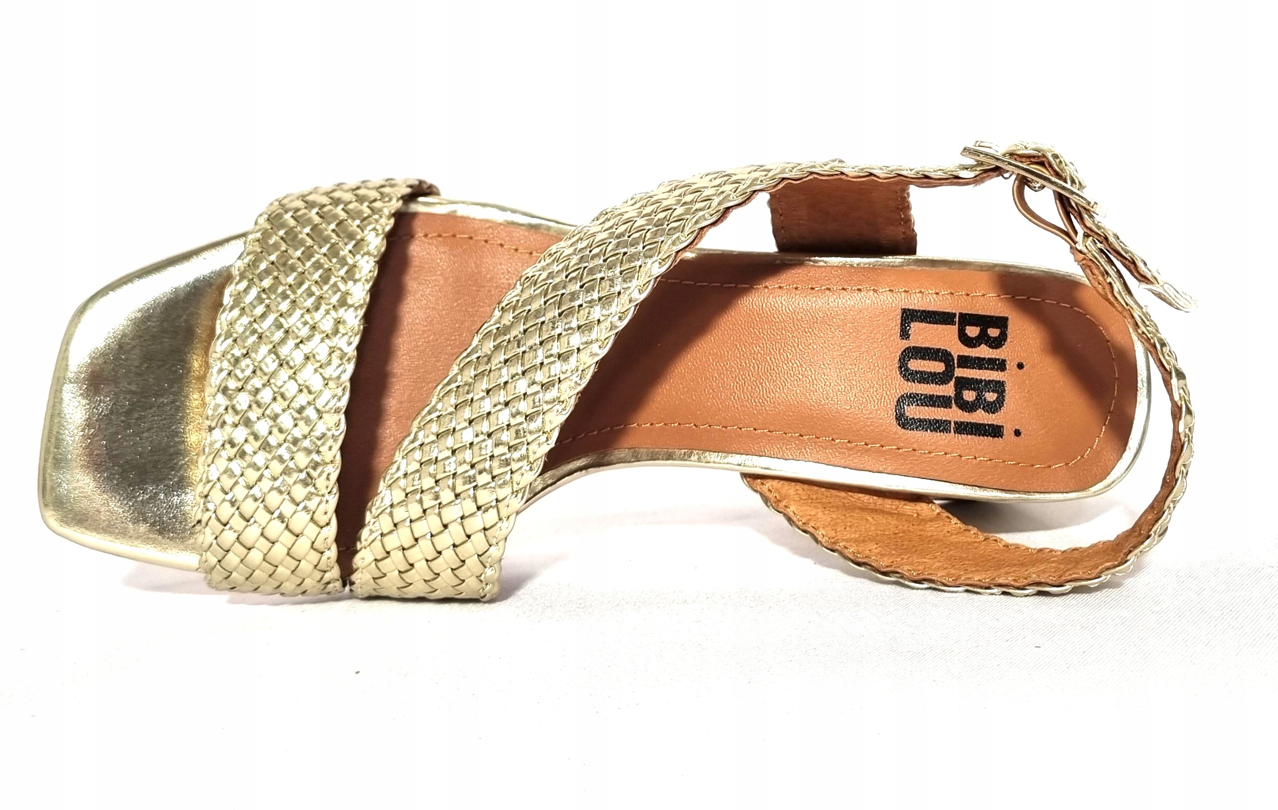Przedstawiamy państwu sandały hiszpańskiej marki BIBI LOU. Zostały wykonane ze skóry ekologicznej. Wkładka została wykonana ze skóry naturalnej. Zapięcie na sprzączkę. Wysokość obcasa wynosi 6,8 cm.