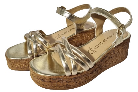 Sandały wygodne Marco Tozzi koturn 28395-20 złote r37