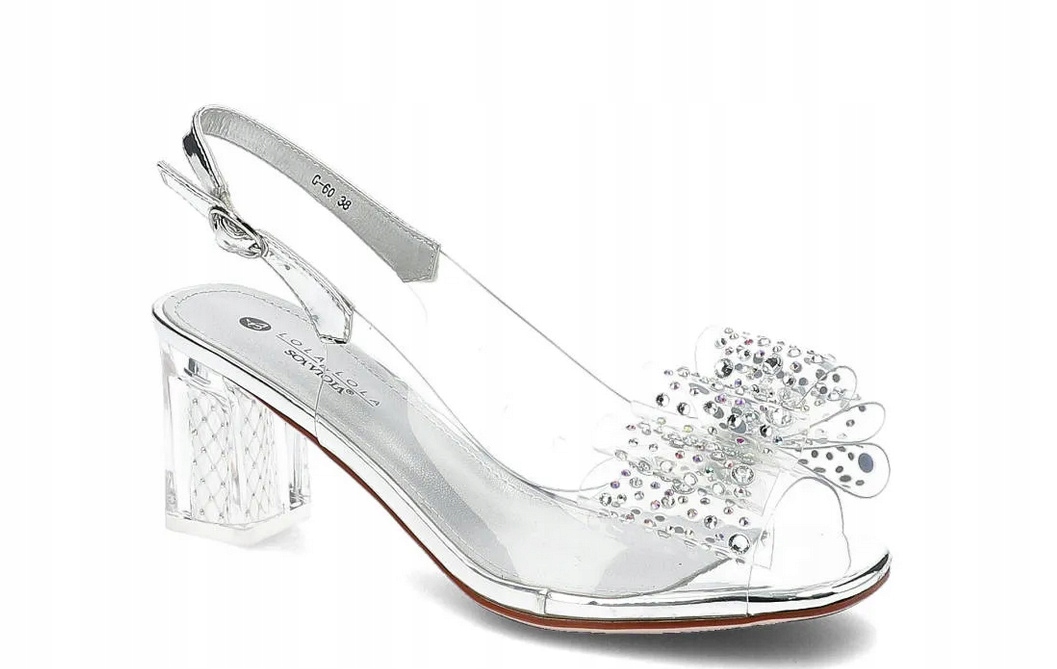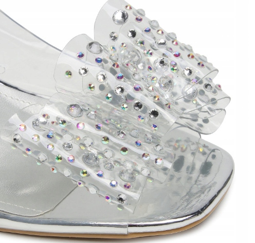 Pięknie prezentują się na stopach, o efekcie całości decyduje wierzchnia część cholewki, która została wykonana z przezroczystego, wysokogatunkowego silikonu oraz piękna zdobiona kokarda która dodaje im uroku. Model ten z racji swojej miękkości bardzo dobrze dopasowuje się do stopy.