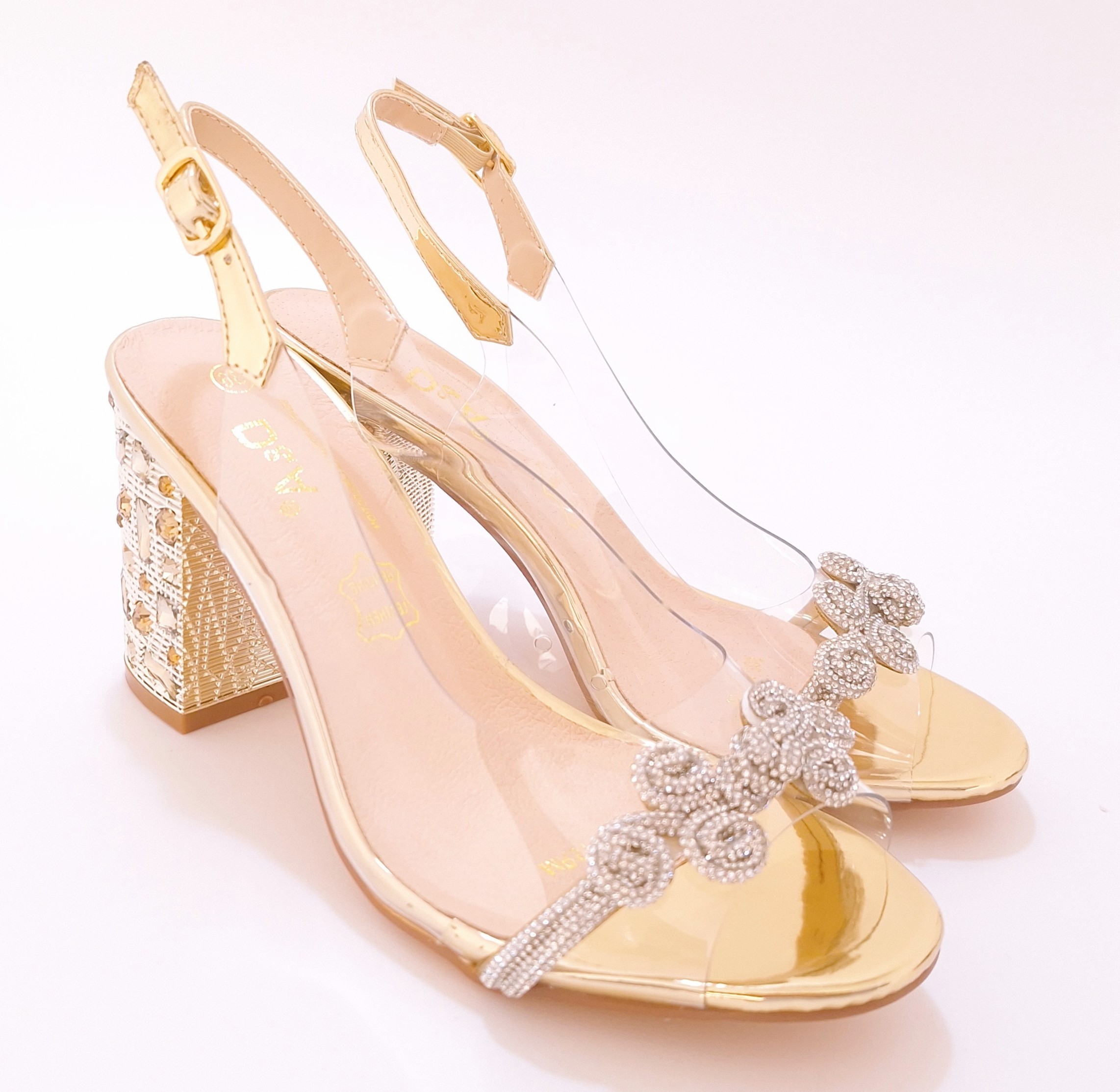 Złote transparentne sandały