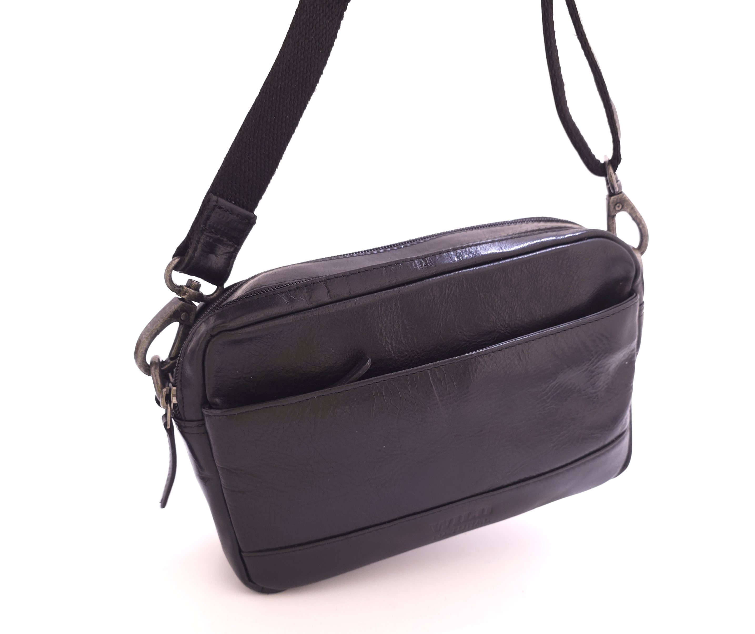 Skórzana czarna saszetka męska do ręki i na ramię Wild Natural 1149