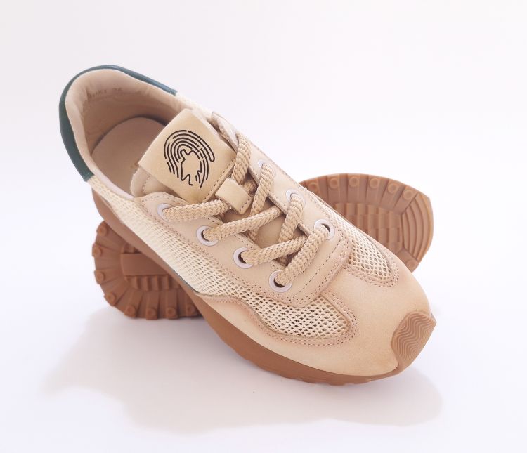 - Stylowe beżowe sneakersy damskie Loretta Vitale ze skóry naturalnej i siateczki. Idealne na wiosnę i lato. Wygodne, przewiewne i modne