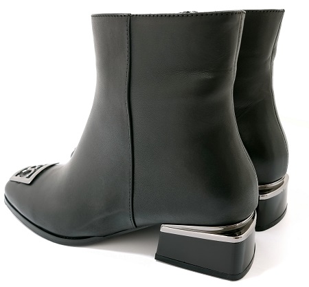 Wnętrze zostało wyściełane przyjemną dla stopy tkaniną, zapewniając Ci niezrównany komfort przez cały dzień. Subtelna ozdoba umieszczona na nosku botków dodaje im niepowtarzalnego uroku. Szeroki i wygodny obcas w kształcie słupka o wysokości 4 cm, sprawia że buty są stabilne i bardzo wygodne. Umieszczona ozdobna blaszka na obcasie to kwintesencja kobiecego wdzięku, która wyróżni Cię z tłumu. Antypoślizgowa i doporna na ścieranie podeszwa została wykonana z wysokogatunkowego tworzywa sztucznego. Nie musisz martwić się o sznurowadła czy zawiązywanie buty posiadają praktyczne zapięcie w postaci suwaka po wewnętrznej stronie, co sprawia, że ich zakładanie oraz zdejmowanie jest niezwykle proste i wygodne.