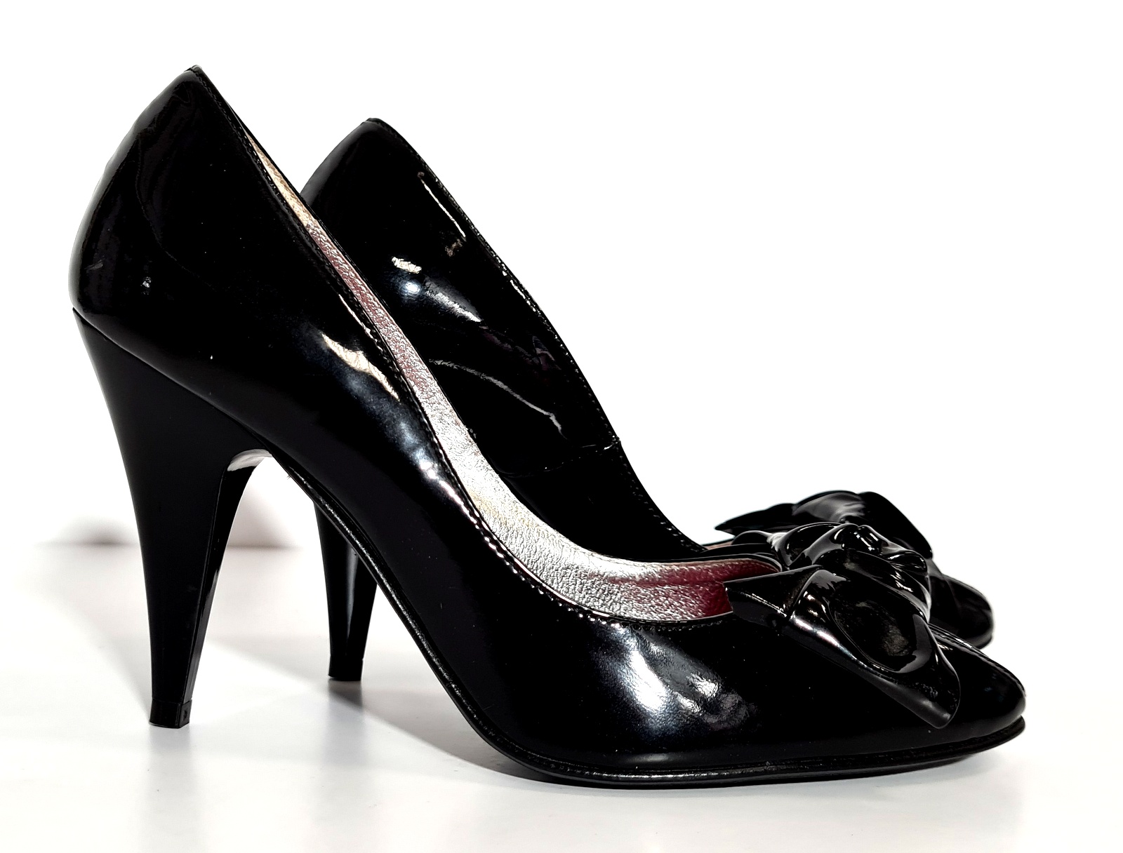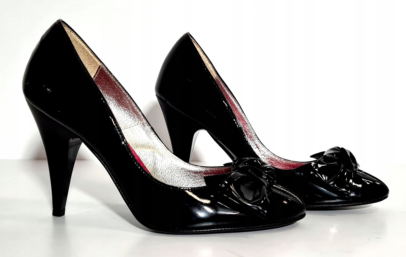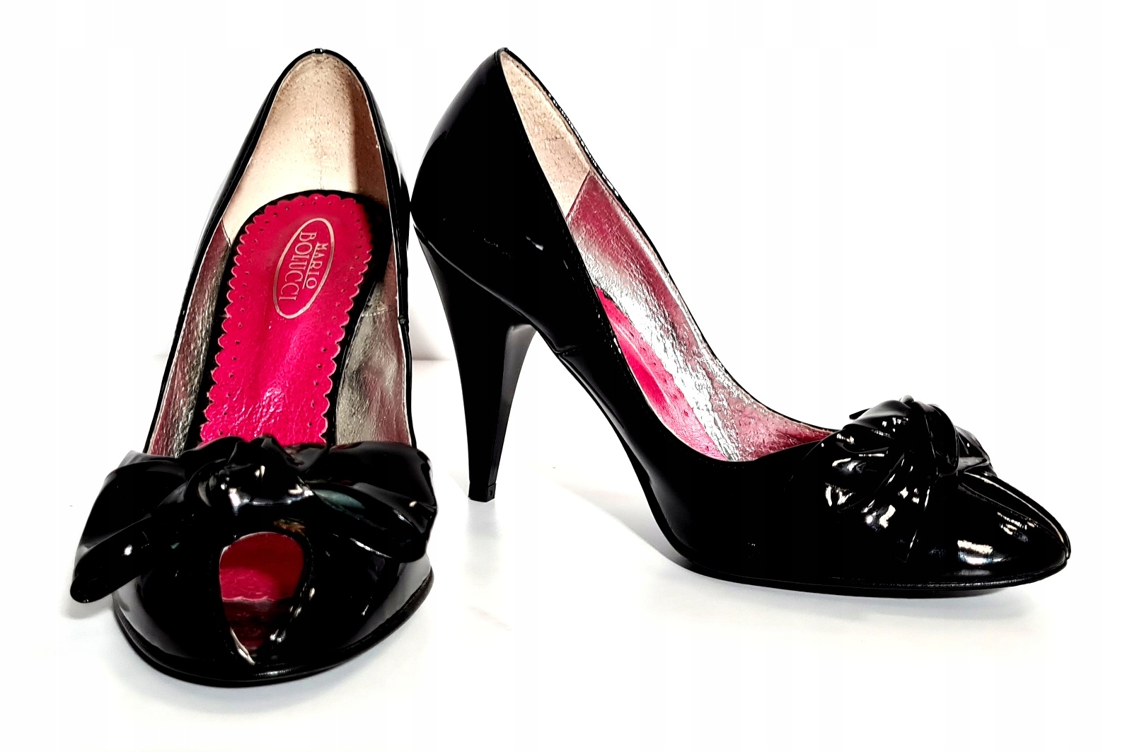 Skórzane lakierowane czółenka damskie Mario Bolucci r.35 czarne 1234