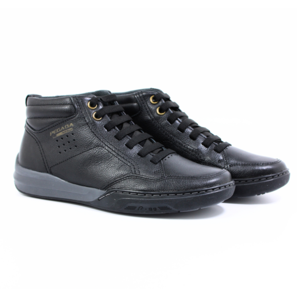 Męskie półbuty sięgające za kostkę marki Pegada to połączenie stylu i funkcjonalności. Wykonane z wysokiej jakości skóry naturalnej, charakteryzują się trwałością. Półbuty posiadają zamiast tradycjnych sznurówek, elastyczne gumy, które pozwalają na regulację bez konieczności wiązania, co zapewnia dużą praktyczność podczas zakładania. Elastyczna podeszwa zapewnia doskonałą przyczepność na różnych nawierzchniach. Buty wyposażone są w technologię Shock Point, która absorbuje wstrząsy i poprawia komfort w chodzeniu. Obuwie w sportowym stylu idealne do casualowych stylizacji. Przez uniwersalny i ponadczasowy czarny kolor półbuty męskie dopasujesz z łatwością do każdej jesienmo-zimowej stylizacji.