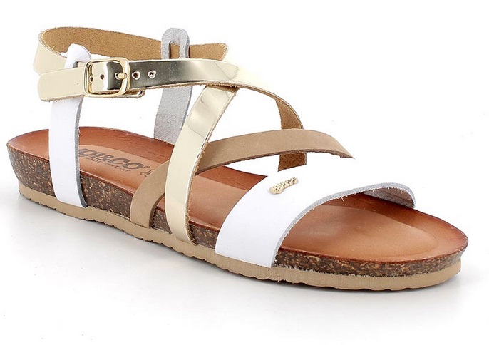 - Skórzane sandały damskie Igi&Co w biało-beżowo-złotej kolorystyce. Wykonane ze skóry naturalnej. Wkładka skórzana, zapamiętująca kształt stopy. Lekka podeszwa gwarantuje stabilność. Zapinane na sprzączkę. Idealne na lato.
