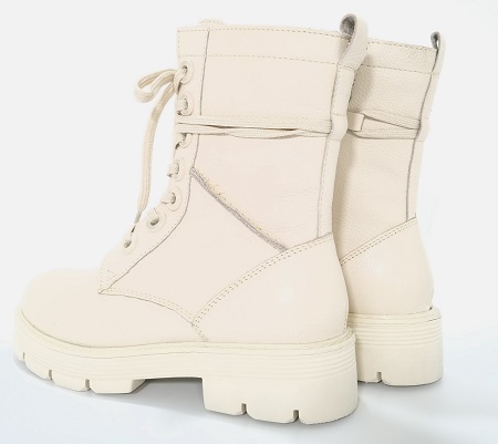 • Skórzane trapery workery damskie wykonane z naturalnej skóry licowej w beżowym kolorze.