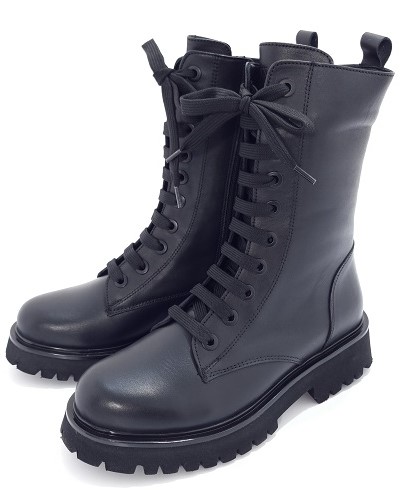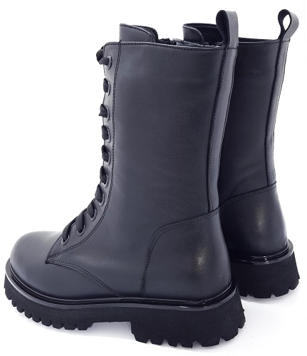 Wykonane z najwyższej jakości naturalnej licowej skóry, która zapewnia trwałość i wytrzymałość na długi czas. Wnętrze zostało wyściełane futerkiem syntetycznym, co sprawia, że trzewiki są idealnym wyborem na chłodniejsze dni. Miękka i ocieplana wkładka gwarantuje niezrównany komfort podczas chodzenia. Tradycyjne sznurowadła zapewniają idealne dopasowanie obuwia do łydki. Aby ułatwić zakładanie i zdejmowanie butów, model botków wyposażony jest w suwak oraz praktyczny uchwyt znajdujący się w tylnej części cholewki. Fason trzewików opiera się na traperowej platformie, co nie tylko dodaje im charakteru, ale też zapewnia wygodę na każdym kroku. Szeroki obcas mierzący 4 cm zapewnia dobrą stabilność.